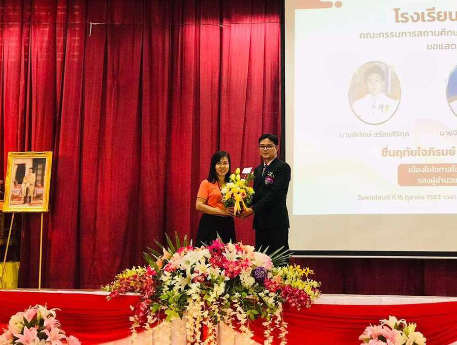 วันที่ 16 ตุลาคม 2563 คณะผู้บริหาร คณะครู บุคลากรทางการศึกษาและนักเรียนโรงเรียนวังเหนือวิทยา ร่วมงานแสดงความยินดีกับครูจักรินทร์ จอมแก้ว ครูกลุ่มสาระการเรียนรู้วิทยาศาสตร์และเทคโนโลยี เนื่องในโอกาสที่ได้รับเลื่อนตำแหน่งเป็นรองผู้อำนวยการโรงเรียนแจ้ห่มวิทยา อ.แจ้ห่ม จ.ลำปาง S:0