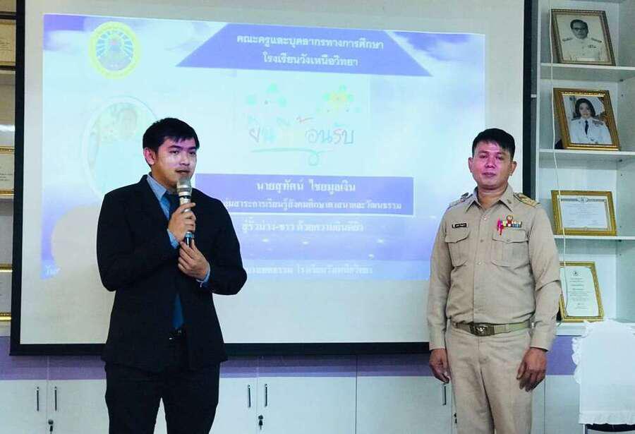 วันที่ 30 พฤศจิกายน 2563 นางสิริประทุม โตนะโพ รองผู้อำนวยการโรงเรียนกลุ่มบริหารงานบุคคล นายสมชาย พันธุ์สันติกุล รองผู้อำนวยการโรงเรียนกลุ่มบริหารงานวิชาการ และนายปรัชญ์ มาวิเลิศ รองผู้อำนวยการโรงเรียนกลุ่มบริหารงานทั่วไป เป็นเกียรติกล่าวต้อนรับ นายสุทัศน์ ไชยมูลเงิน ครูโรงเรียนทุ่งโพธิ์ทะเลพิทยา จ.กำแพงเพชร ย้ายมาดำรงตำแหน่งครูผู้สอนกลุ่มสาระการเรียนรู้สังคมศึกษา ศาสนาและวัฒนธรรมโรงเรียนวังเหนือวิทยา S:0