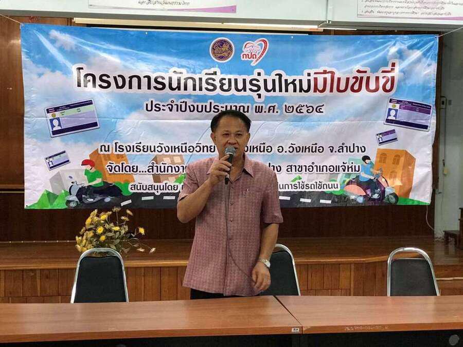 โรงเรียนวังเหนือวิทยา ร่วมกับ สำนักงานขนส่งจังหวัดลำปาง สาขาอำเภอแจ้ห่ม จัดอบรมในโครงการนักเรียนรุ่นใหม่ มีใบขับขี่ ณ ห้องประชุมศรีพฤกษ์ โรงเรียนวังเหนือวิทยา S:0