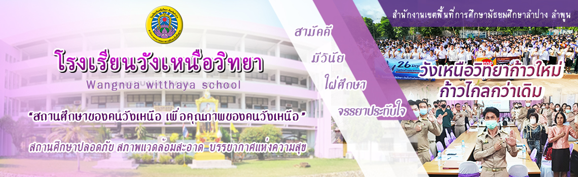 โรงเรียนวังเหนือวิทยา 447 หมู่ 4 ต.วังเหนือ อ.วังเหนือ จ.ลำปาง ต.วังเหนือ อ.วังเหนือ จ.ลำปาง 52140 โทรศัพท์ 054279074 โทรสาร 054332257 ขับเคลื่อนโดย THAI.AC เข้าระบบ
