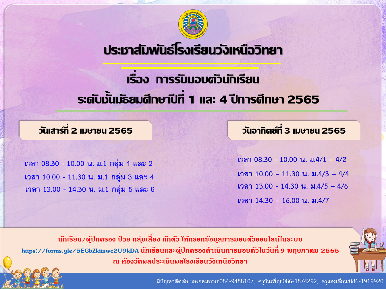 ระบบมอบตัวออนไลน์ : https://forms.gle/5EGbZkitzwc2U9kDA