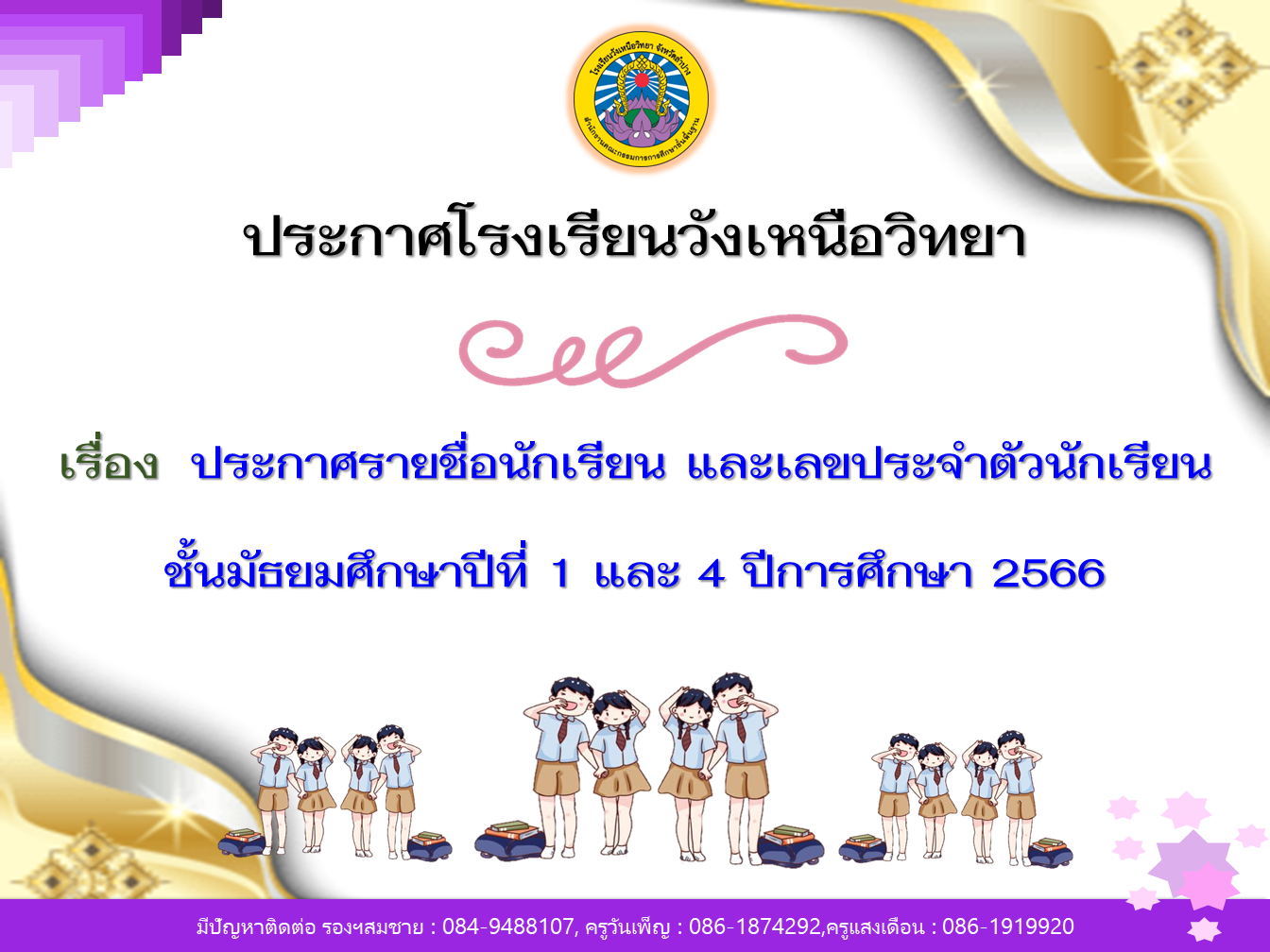 รายชื่อและเลขประจำตัวนักเรียนชั้นมัธยมศึกษาปีที่ 1 : http://wnw.ac.th/client-upload/wnw/download/M1-Lek.pdf