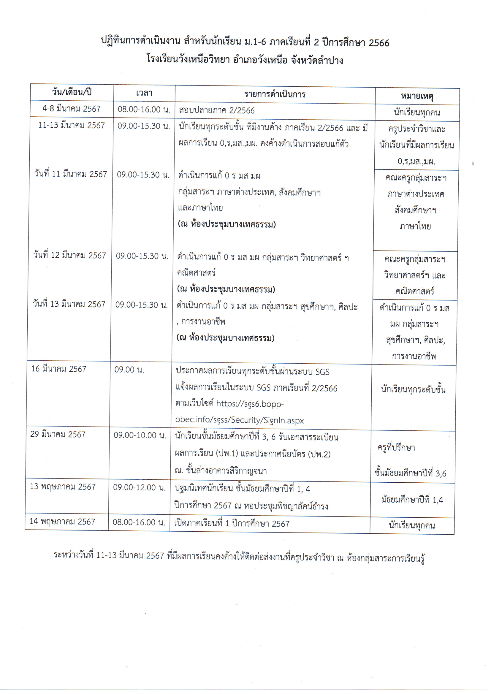 ปฏิทินสำหรับนักเรียน 2-2566